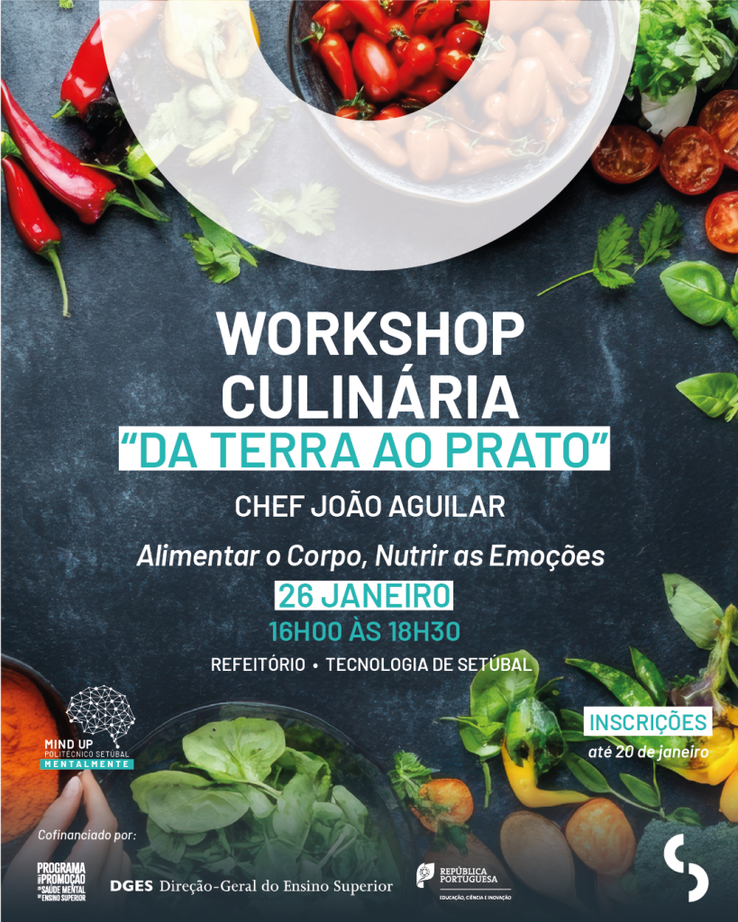 O Politécnico de Setúbal (IPS) promove, no próximo dia 26 de janeiro, o workshop de culinária “Da Terra ao Prato – Alimentar o Corpo, Nutrir as Emoções”, conduzido pelo chef João Aguilar, responsável pelo Ateliê Solo, em Lisboa, um projeto de culinária saudável e sustentável que visa promover a alimentação consciente.